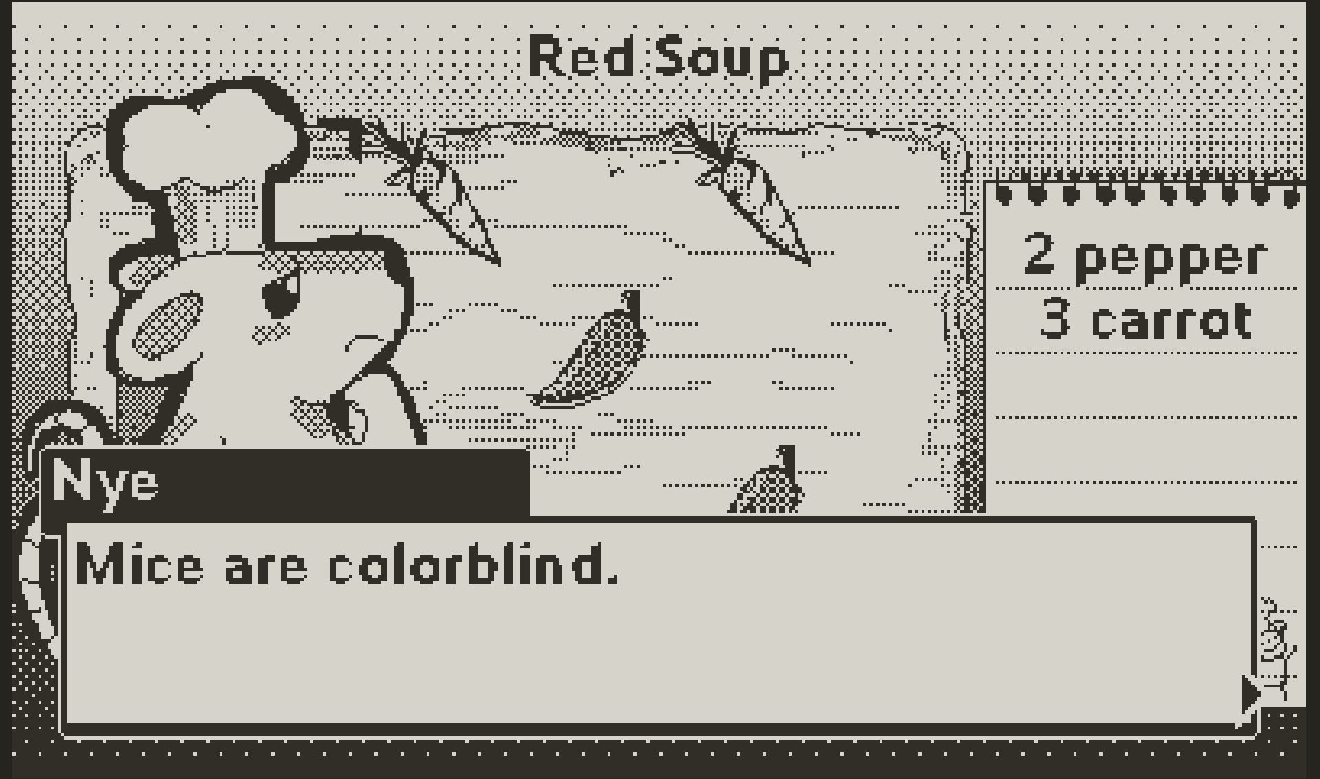 Mice and Dice is a cooking-themed puzzle game, in which you take control of Nye, a tiny mouse with big culinary dreams. You've been taken under the wing of Euschen, the world-famous rat chef. Sadly, Euschen's dicing days are over after a harrowing encounter with THE BEAST left him one paw short.